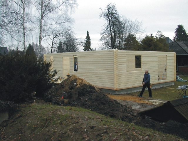 Gabi sah es im Internet und war begeistert. Ein Complett Blockhaus.